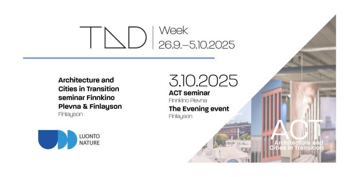 Moderator of panel discussion at the Architecture and Cities in Transition (ACT) seminar within the TAD week to be held in the Finlayson area in Tampere on Friday 3 October 2025.